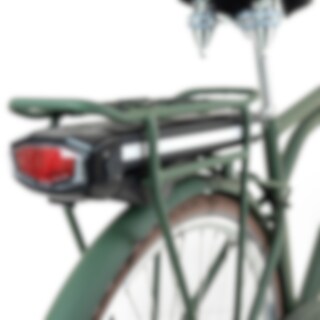 Cyklens litiumbatteriet er placeret i bagagebæreren. Det kan sagtens lade sig gøre at oplade batteriet, mens det sidder i cyklen, men det kan også tages ud og oplades et andet sted. Batteriet har kvalitetsceller af typen 18650, hvilket garanterer en lang levetid og stabil ydelse. Kapaciteten er 36V 12 Ah. Rækkevidden for elcykler er altid svær at specificere, da det afhænger af en række forskellige faktorer, især hvor meget du hjælper til med at cykle, og hvilket assistanceniveau du har valgt. For at give en vejledende idé plejer vi at angive rækkevidden til ca.: 45-75 km pr. opladning.
