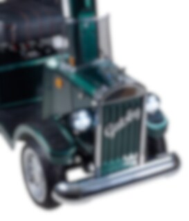 Vi tør godt sige, at dette uden tvivl er den fineste (og mest luksuriøse) el-scooter, vi nogensinde har haft i vores sortiment! Hele løbehjulet er spækket med designede detaljer som f.eks de klassiske fælge, kromspejle, stor grill foran, runde lygter foran, ribbede kofangere bag og foran samt røde racersyninger på sædet.