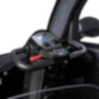Fartøjet er nemt at betjene: accelerér med et håndtag på styret og brems ved at slippe gashåndtaget. På styret findes et digitalt panel, der viser hastighed, batteristatus og anden vigtig information, tydeligt synlig selv i mørke takket være baggrundsbelysningen. Der er også en regulator til at begrænse motoreffekten, hvilket giver en blidere acceleration og lavere topfart – perfekt til trange områder. Kabinscooteren tilbyder flere indstillingsmuligheder for at passe forskellige førere. Sædet kan justeres i længderetningen, ryglænet kan vinkles, og nakkestøtten kan justeres i højden. Styret kan også vinkles i to positioner for en optimal kørestilling. Der er desuden plads til tasker foran eller bag sædet. For at få plads til en taske bag sædet skal sædet skubbes helt frem.