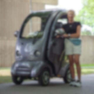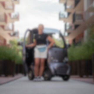 Kabinscooteren er lige så nem at køre som vores almindelige gå-scootere og kræver ikke kørekort. Forskellen er, at denne model har tag og døre, hvilket gør den mere lig en almindelig personbil. Den er udstyret med funktioner som elektriske vinduer, kabineblæser med varmefunktion, vinduesvisker og kraftige LED-forlygter. Gratis parkering gælder også, ligesom for en cykel.