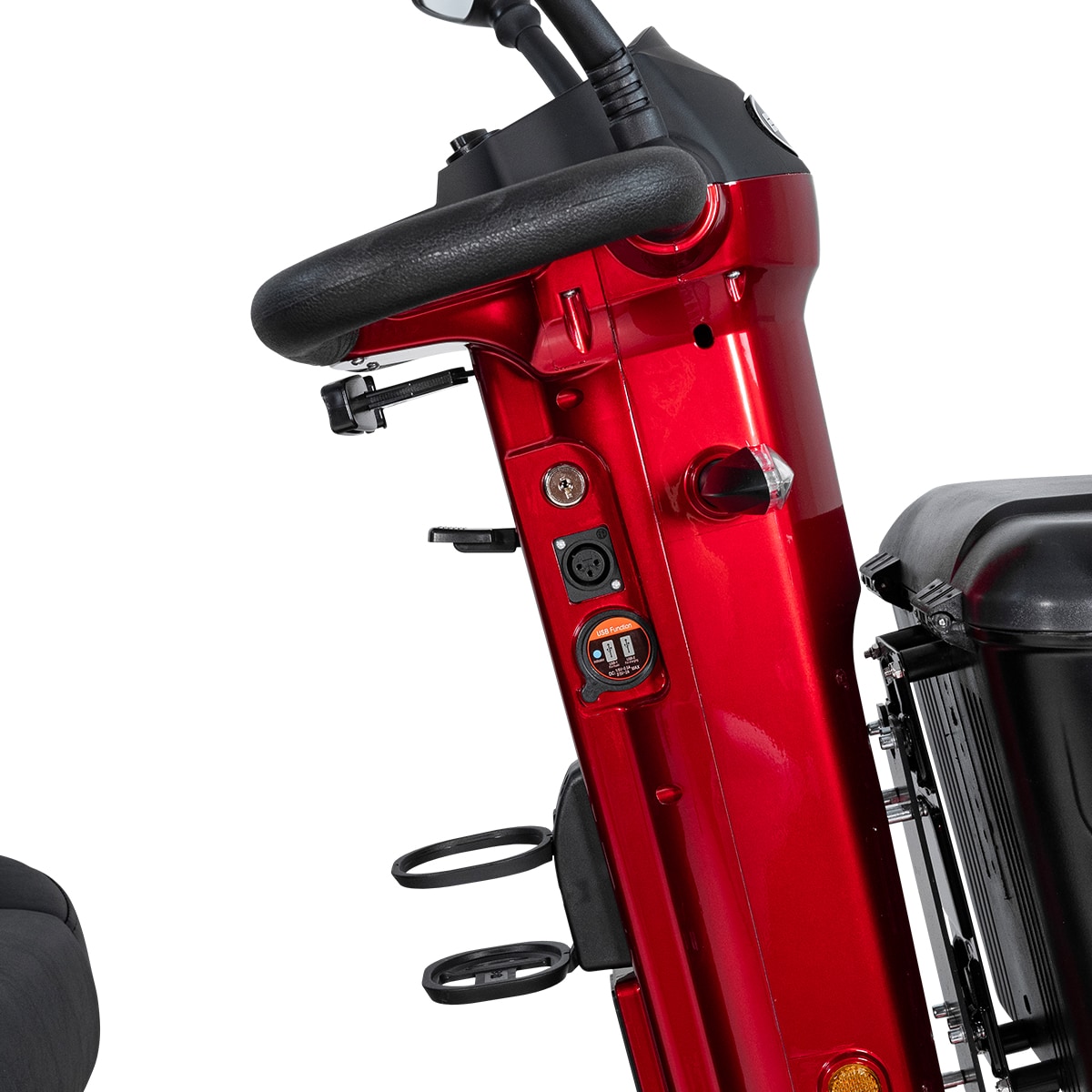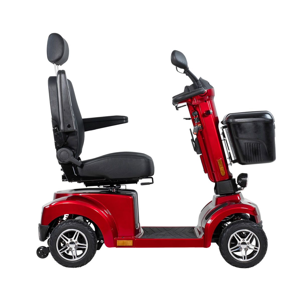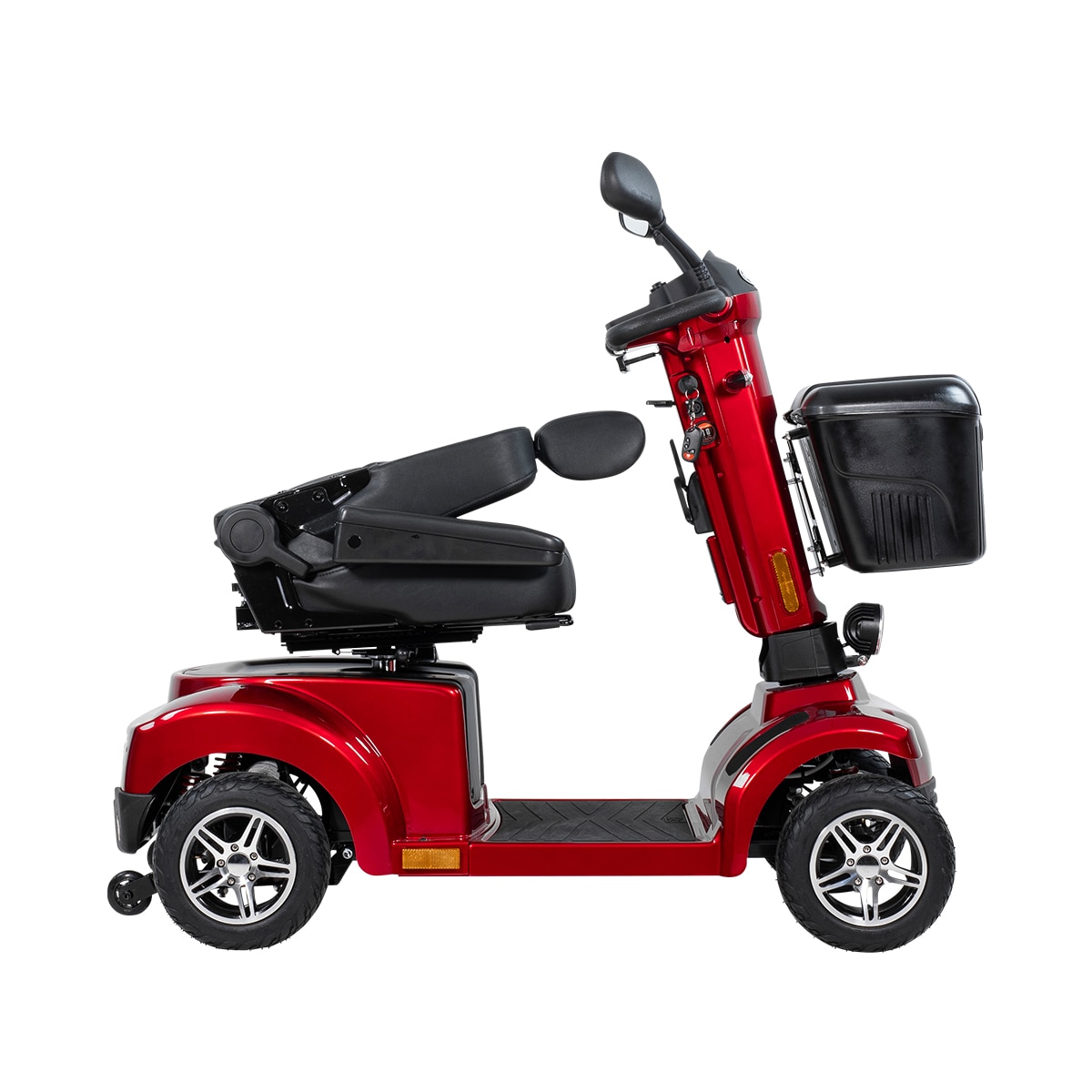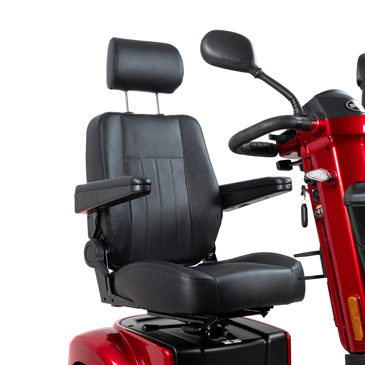Med en X-50 II er det nemt at tilpasse kørestillingen til hver mands behov. Styret kan vinkles mod sædet, og selve sædet kan justeres i højde, længde og vinkel på ryglænet. For at gøre det nemmere at komme ind og ud af sædet, kan du slå armlænene op og dreje sædet 90 grader til siden. Alt i alt er der alle de justeringsmuligheder, du kan ønske dig!