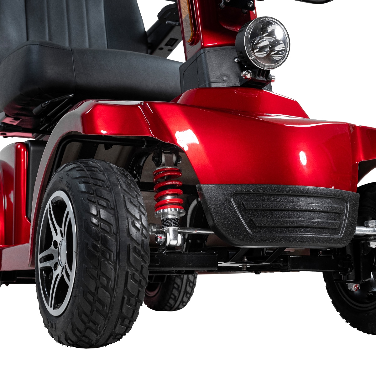 Modellen er udstyret med fire affjedrede, luftfyldte hjul (diameter 26 cm), der bevæger sig godt selv på bakkede overflader. Jordveje, græsplæner og de fleste stier er derfor ikke noget problem for dem, der trives på asfaltveje. Det mellemstore format på X-50 II er lige så velegnet til den lange gåtur, som det er til købmanden eller indkøbscentret.