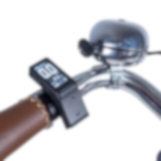 På styret findes en stilfuld baggrundsbelyst OLED-skærm, som du bruger til at indstille, hvor meget motoren skal hjælpe på fem niveauer. Her vises også information om batteriets status, hastighed, gennemsnitshastighed, topfart og distance. Du styrer også cyklens for- og baglygter direkte via skærmen.