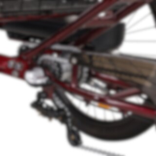 Elegant 2026 har et gennemtænkt design med fokus på tryghed og nem betjening. Den trehjulede konstruktion giver øget stabilitet, uanset om du holder stille eller er i bevægelse. Rammen er fremstillet i aluminium, hvilket gør cyklen både robust og relativt let i forhold til størrelsen. Den lave indstigning gør det nemt at stige af og på, og LED-belysning foran og bag sørger for god synlighed.