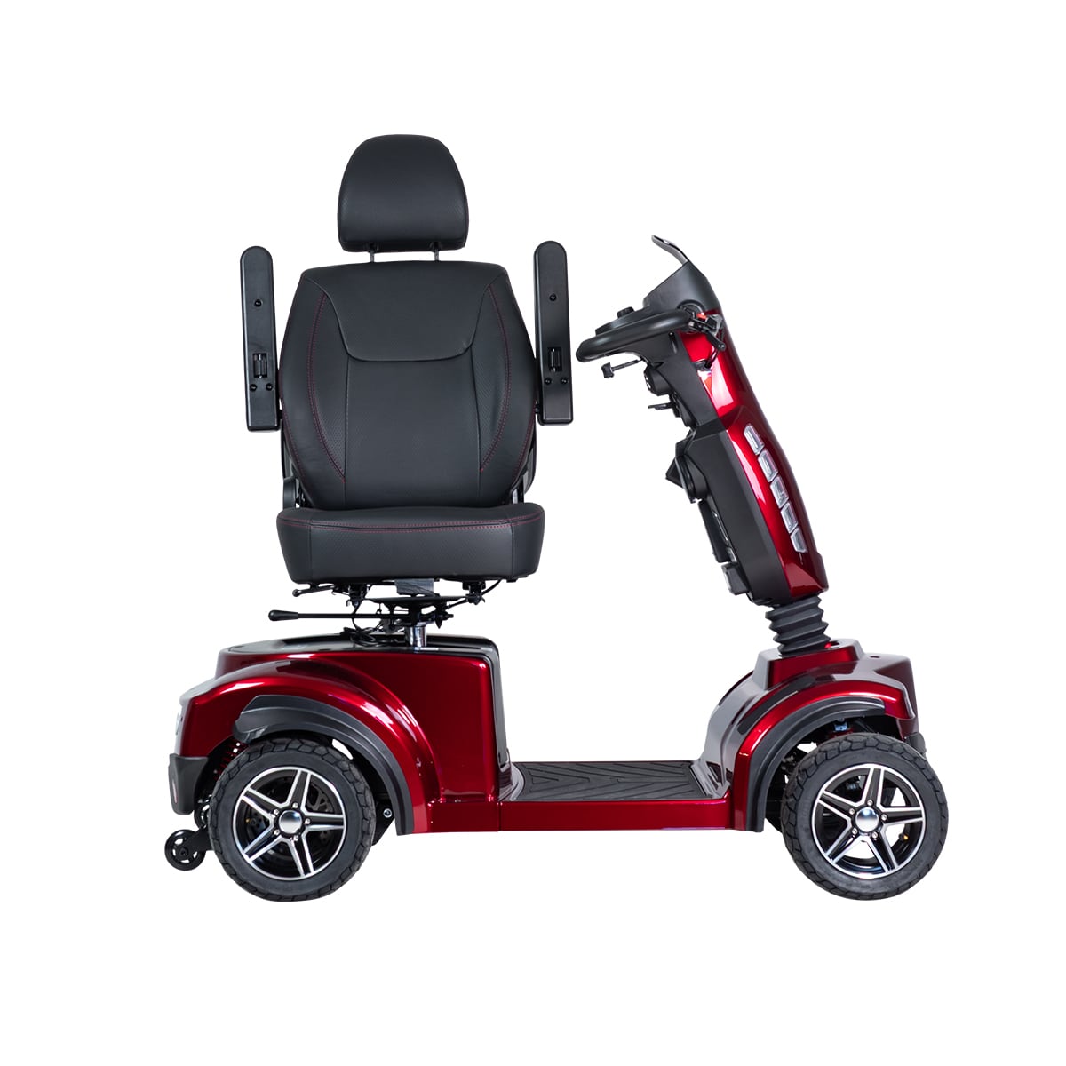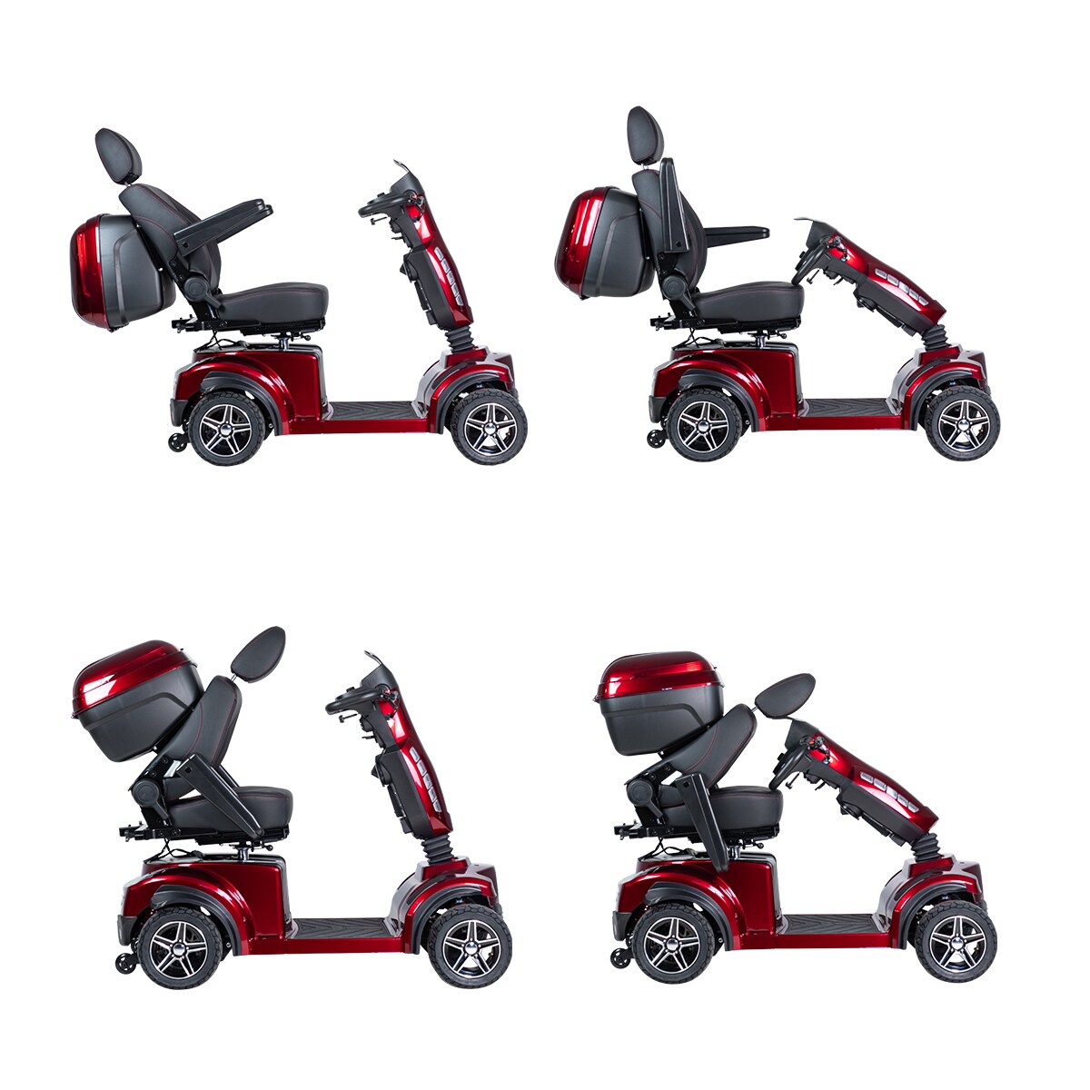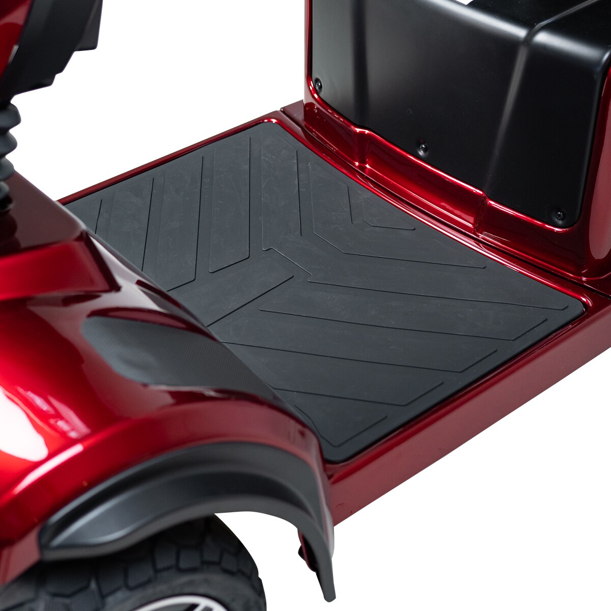 Affjedring for og bag samt luftfyldte dæk giver en blød og stabil køreoplevelse – også på ujævnt underlag. Med to hastighedsniveauer og trinløs hastighedsregulering kan du nemt tilpasse farten efter omgivelserne.