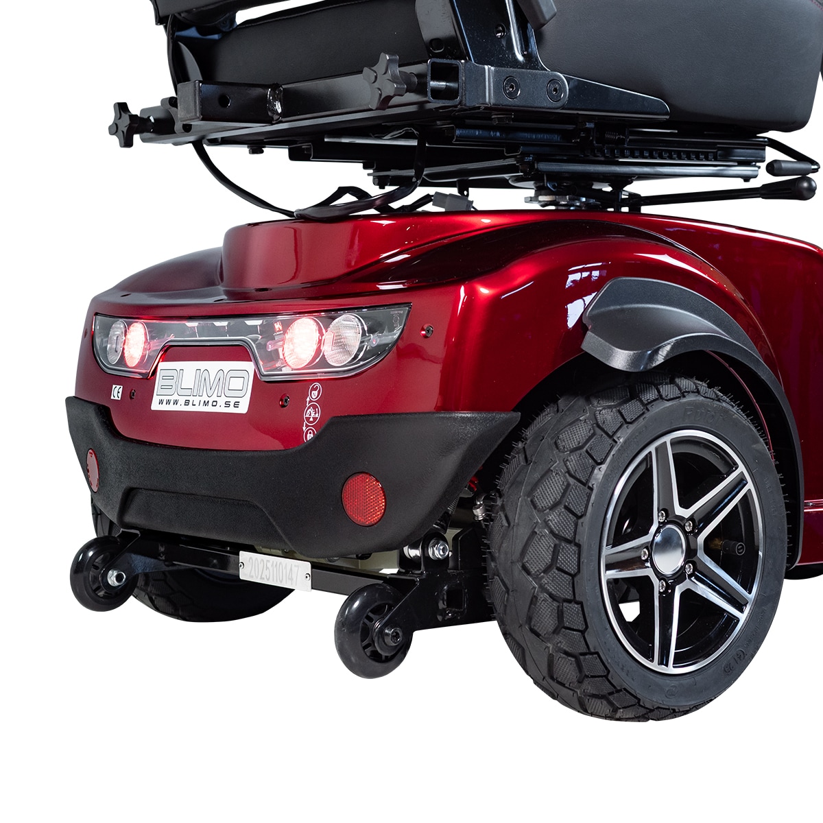 Blimo X-600 Premium er bygget til at give en stabil og tryg oplevelse. Fire hjul sikrer god balance og stabilitet under hele turen. Det automatiske bremsesystem i kombination med hydraulisk håndbremse giver sikker og kontrolleret opbremsning.