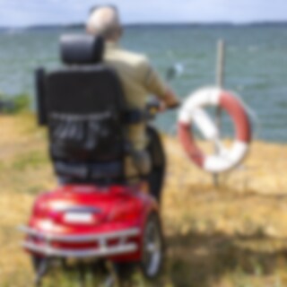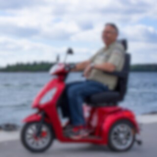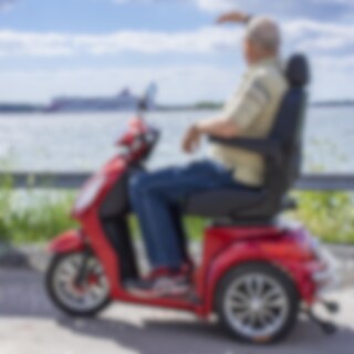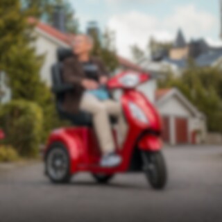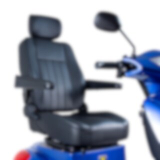 Scooteren er udstyret med et behageligt sæde med flere justeringsmuligheder, herunder vipbart ryglæn, justerbar nakkestøtte og foldbare armlæn. Perfekt til førere mellem 150 cm og 195 cm, som ønsker optimal kørestilling.