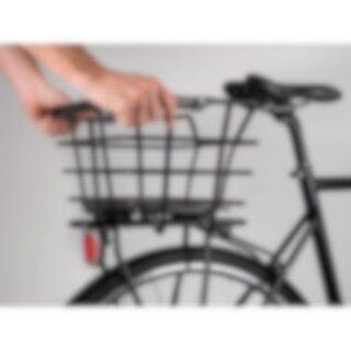 AVS cykelkurv fra svenske Atran Velo med 23 liter plads. Håndtagene gør det nemt at bære kurven, når den er pakket ud. Med AVS-kliksystemet (Atran Velo System) er den hurtig at montere og sidder stabilt på cyklen. Kurven har en maksimal belastning på 10 kg.