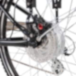 Gearsystemet kommer fra Shimano (model Altus), og der er 8 gear. Bremsesystemet består af hydrauliske skivebremser på både for- og baghjul, hvoraf den ene er forsynet med parkeringsbremsefunktion, hvis cyklen parkeres på en skråning.