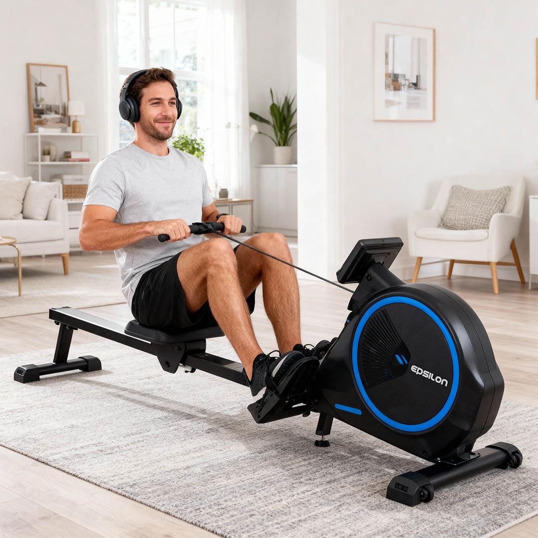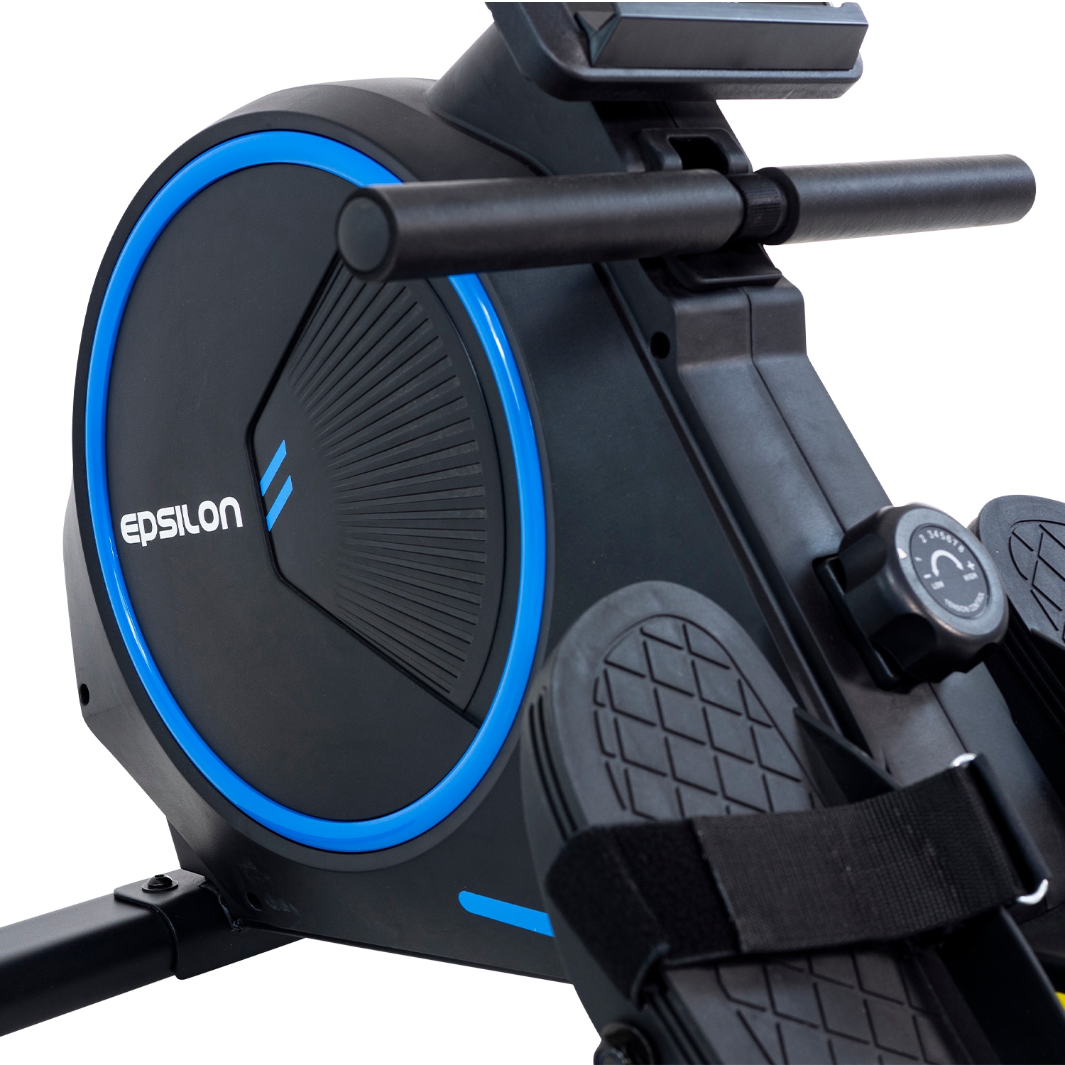 Epsilon RX70 V2 er en magnetisk bremset romaskine med manuelt styret magnetisk modstand med 8 faste positioner. Den magnetiske bremse betyder, at modstanden genereres uden friktion, hvilket giver en stille drift med meget lidt vibration - perfekt til træning derhjemme!