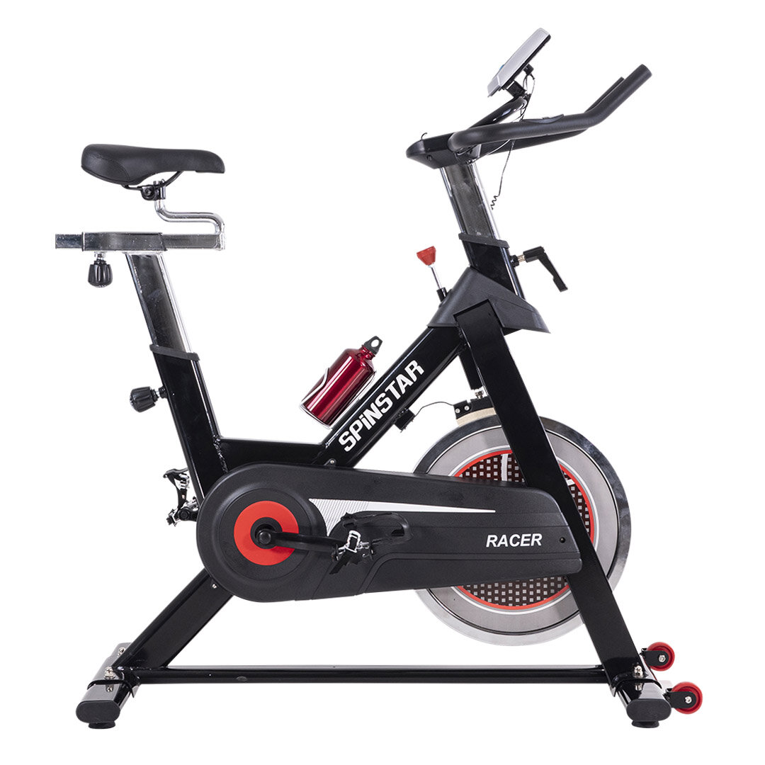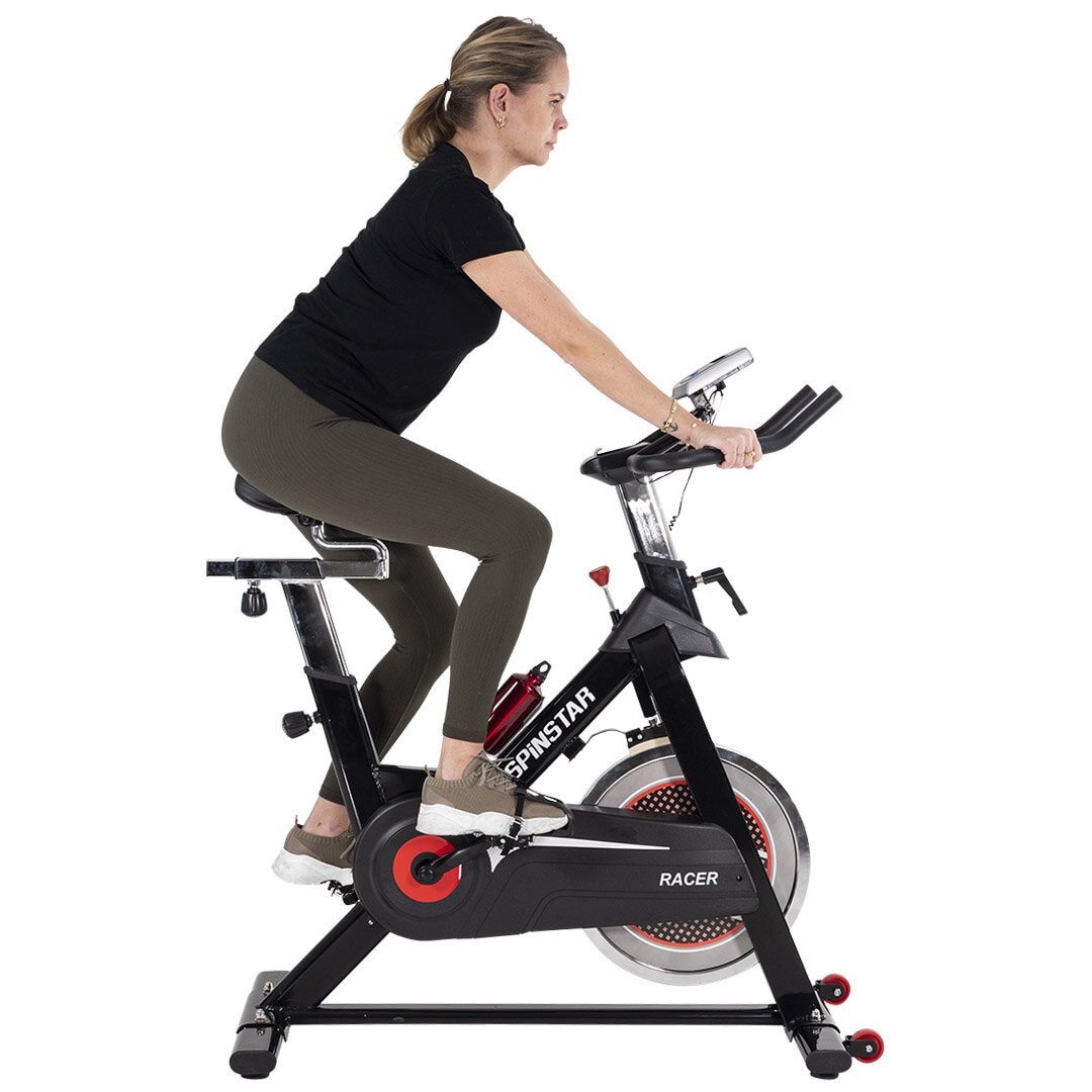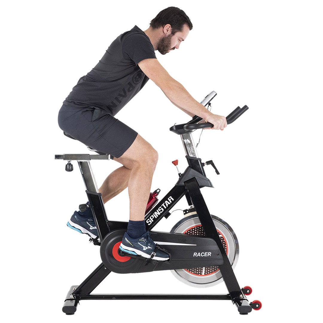 Spinstar Racer er en robust spinningcykel med et 18 kg tungt svinghjul. Modellen har en stærk stålramme, der sammen med det tunge svinghjul sikrer intens træning. Maksimal brugervægt er 125 kg. Pedaler med kurv er inkluderet, samt pulsmålere. Der er hjul i hård gummi i forreste støtteben for nemt at kunne rulle spinningcyklen væk efter træning.
