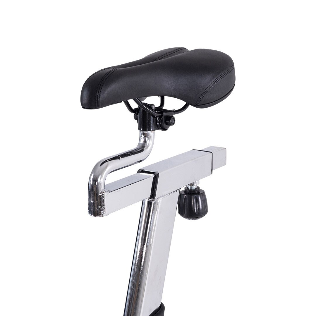 Sadlen er en ergonomisk model med et centralt aflastnings hul i midten. Den er justerbar i højde og længde for at muliggør en optimal siddestilling. Sadlen har en standard beslag, så det er muligt at overflytte favorit sadlen fra din almindelige cykel, hvis det ønskes. Styret på cyklen er en multi positions model, hvilket betyder en række forskellige greb muligheder, både når man træner oprejst, læner sig fremad eller står. Styret kan også justeres i længden for yderligere at optimere kørestilling for forskellige brugere. Pedalerne er lavet af aluminium og har tå-clips for at få ekstra effekt i pedalen og minimere risikoen for at glide med grebet. Fastgørelsen af pedal er standardiseret (9/16 tommer). For dem der ønsker det, kan man udskifte til SPD-pedaler, der er tilpasset til spinningsko, eller overflytte pedalerne fra din almindelige cykel. Spinstar Racer er også udstyret med justerbare fødder på støttebenene for at kunne finjustere i de tilfælde, hvor gulvfladen ikke er helt jævn, f.eks. på gulvfliser.