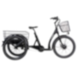 Denne trehjulede cykel leveres med to store kurve. Den bageste kurv har målene (LxBxH) 64 x 54 x 20 cm. 24" hjul for og bag.
